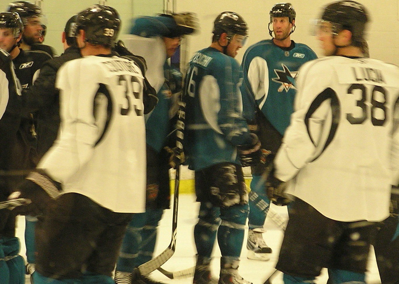 I woke up in full a few minutes later when I heard a booming voice entering the rink. No, it was not Joe Thornton... It was a fan whom I shall call Mr. Friendly. In a demonstration of my usual luck, Mr. Friendly chose to sit right behind me, although there were many open benches on the bleachers.